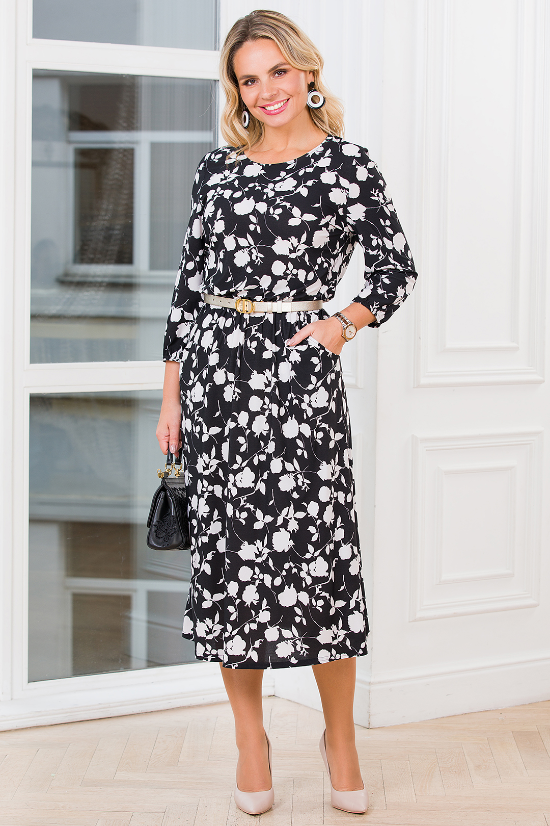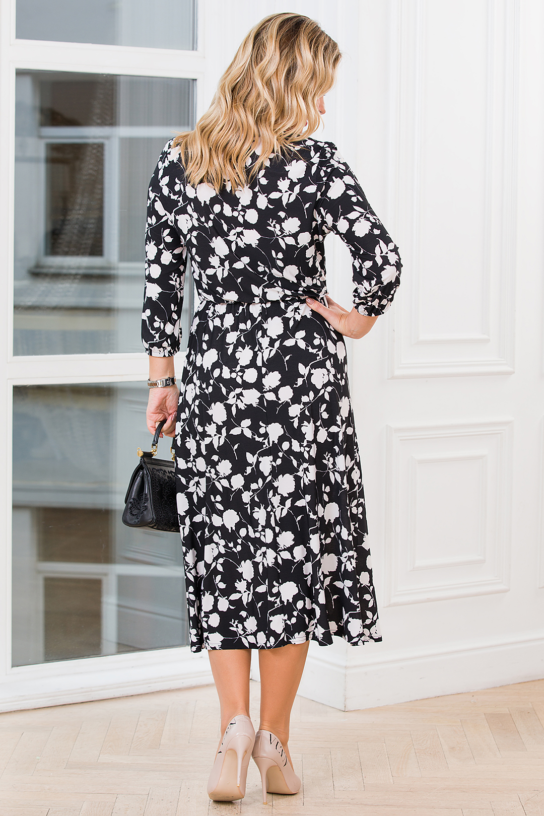 %Платье «Миди». Цвет: чёрный / кремово-белый распродажа%